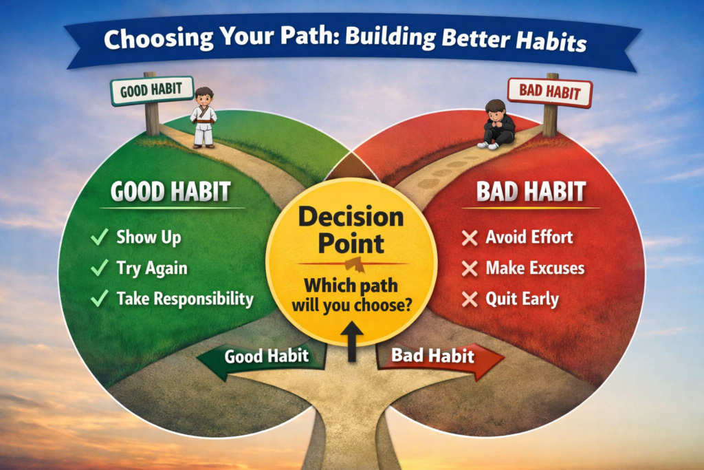 On the other hand, avoiding effort or stepping away too early builds a different habit.